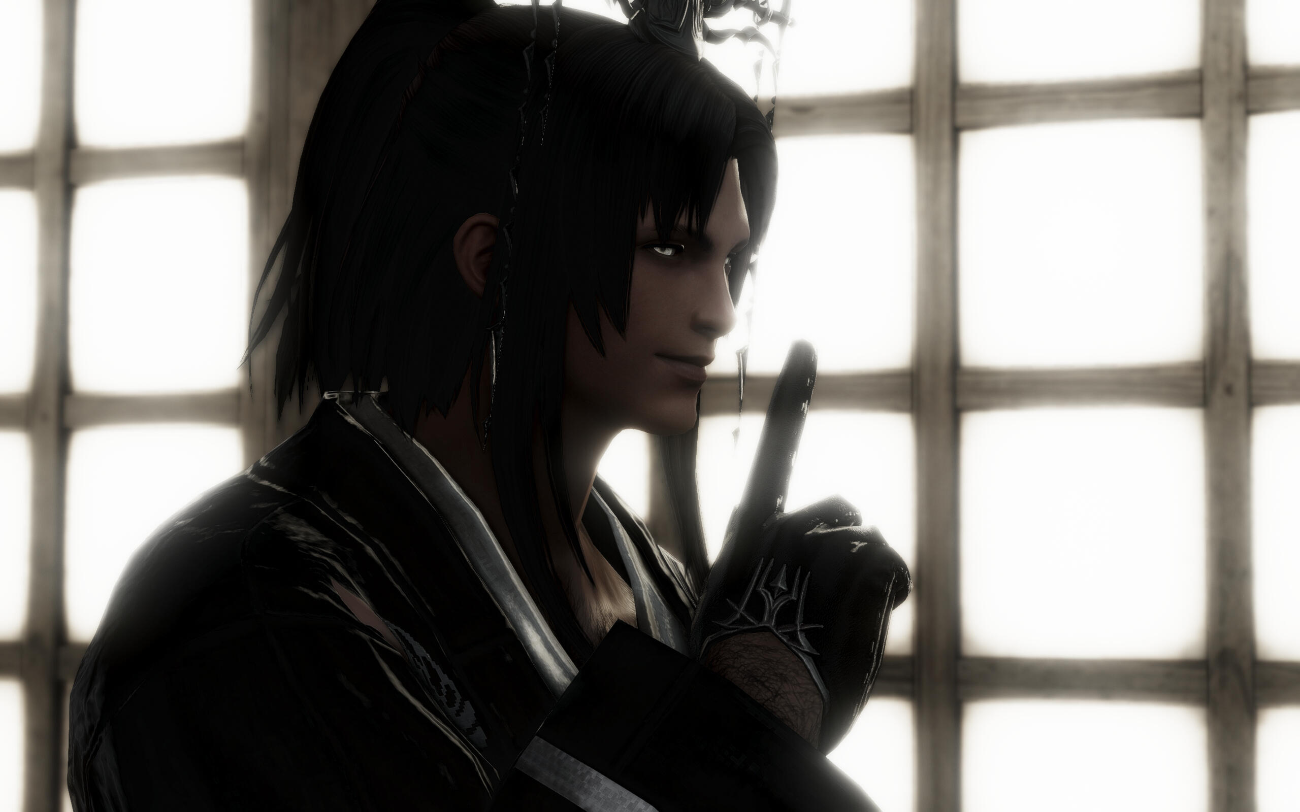 How to Identify: A Raen man, often wearing a dark kimono. Spiky blonde hair, heavily scaled face, and white limbal rings.