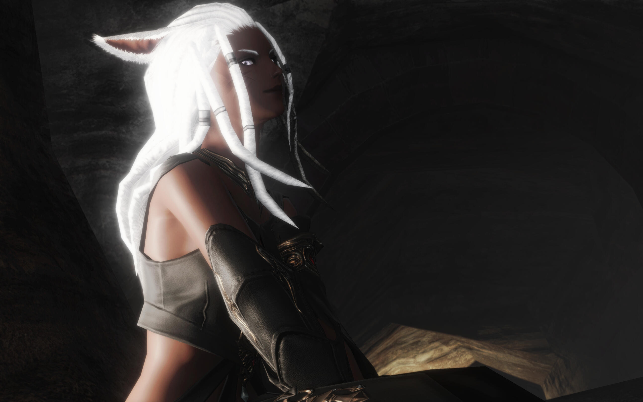 How to Identify: A short and tan Miqo’te with flowing purple hair, flowers woven throughout. He isn’t afraid to disguise himself as a Blade. Who knows what he may disguise himself as? Whatever he disguises himself as, he’ll always have pockets filled with gems.