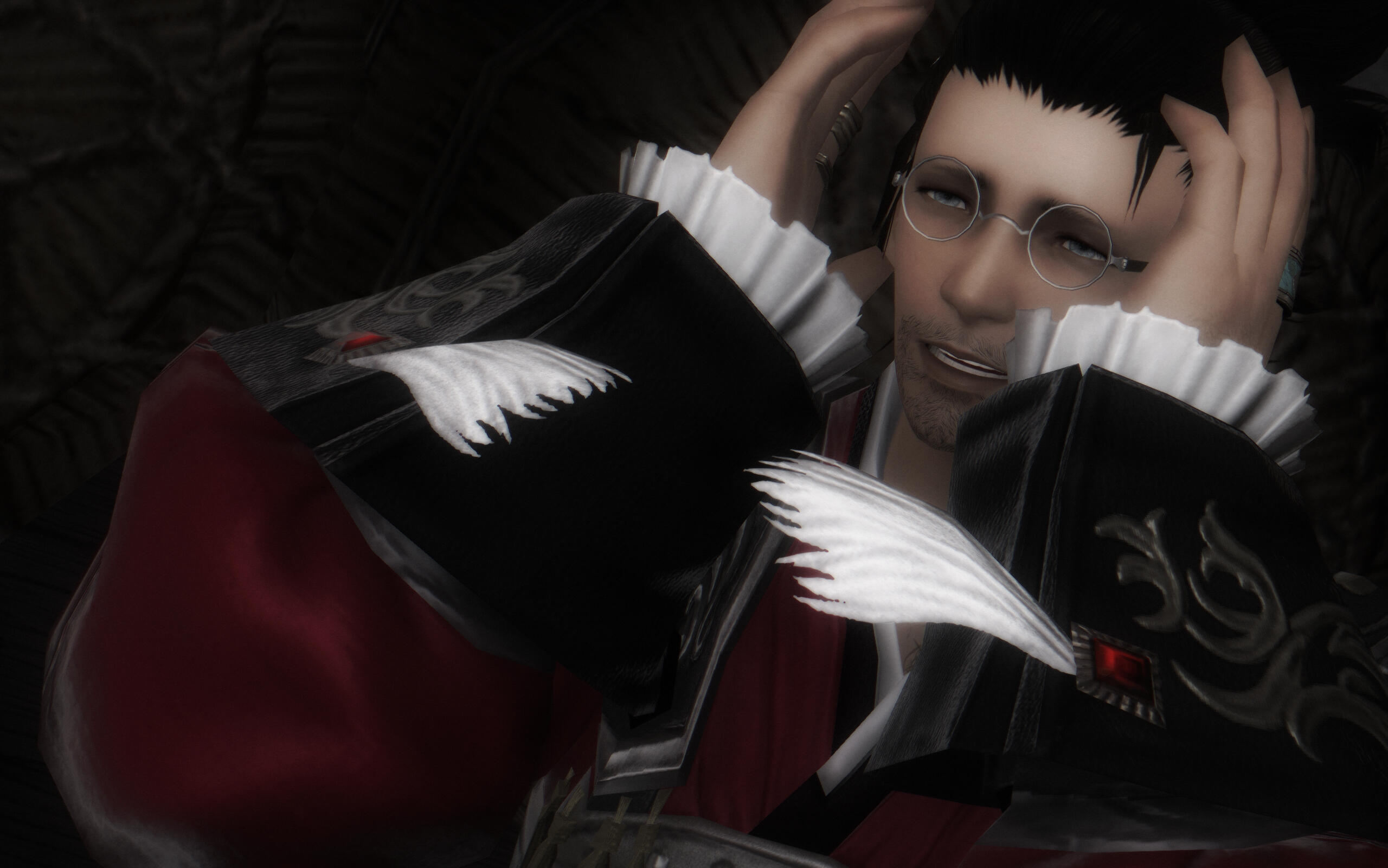 How to Identify: A Hyur man with pale skin and purple hair, often wearing dark robes and a mask of some kind. Followed by crows.